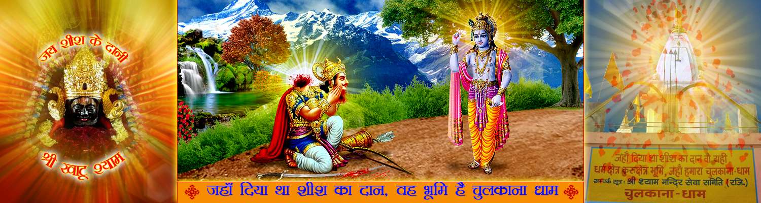 हरियाणा राज्य के पानीपत जिला में समालखा कस्बे से लगभग 5 किलोमीटर की दूरी पर स्थित चुलकाना गांव जो अब चुलकाना धाम से प्रसिद्ध है। यही वह पवित्र स्थान हैं जहां पर बाबा ने शीश का दान दिया था। चुलकाना धाम को कलिकाल का सर्वोत्तम तीर्थ स्थान माना गया है। चुलकाना धाम का सम्बन्ध महाभारत से जुड़ा है। पांडव पुत्र भीम के पुत्र घटोत्कच का विवाह दैत्य की पुत्री कामकन्टकटा के साथ हुआ था। इनका पुत्र बर्बरीक था। बर्बरीक को महादेव एवं विजया देवी का आशीर्वाद प्राप्त था। उनकी आराधना से बर्बरीक को तीन बाण प्राप्त हुये जिनसे वह सृष्टि तक का संहार कर सकता थे। बर्बरीक की माता को संदेह था कि पांडव महाभारत युद्ध में जीत नहीं सकते। पुत्र की वीरता को देख माता ने बर्बरीक से वचन मांगा कि तुम युद्ध तो देखने जाओ, लेकिन अगर युद्ध करना पड़ जाये तो तुम्हें हारने वाले का साथ देना है। मातृभक्त पुत्र ने माता के वचन को स्वीकार किया, इसलिये उनको हारे का सहारा भी कहा जाता है। माता की आज्ञा लेकर बर्बरीक युद्ध देखने के लिये घोड़े पर सवार होकर चल पड़े। उनके घोड़े का नाम लीला था, जिससे लीला का असवार भी कहा जाता है। युद्ध में पहुंचते ही उनका विशाल रूप देखकर सैनिक डर गये। श्री कृष्ण ने उनका परिचय जानने के बाद ही पांडवों को आने के लिये कहा।